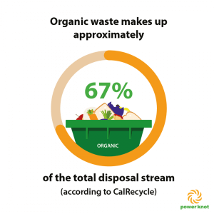 Organic waste makes up approximately 67% of the total disposal stream (according to CalRecycle). This total includes organic waste currently sent to landfills for uses considered “diversion” or “beneficial reuse” under previous statutes.