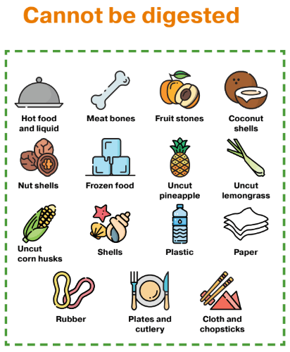 While a biodigester will significantly cut down on the amount of food waste that goes into the garbage, there are certain items that cannot be broken down by this equipment. A brief list of items that cannot be digested includes:
