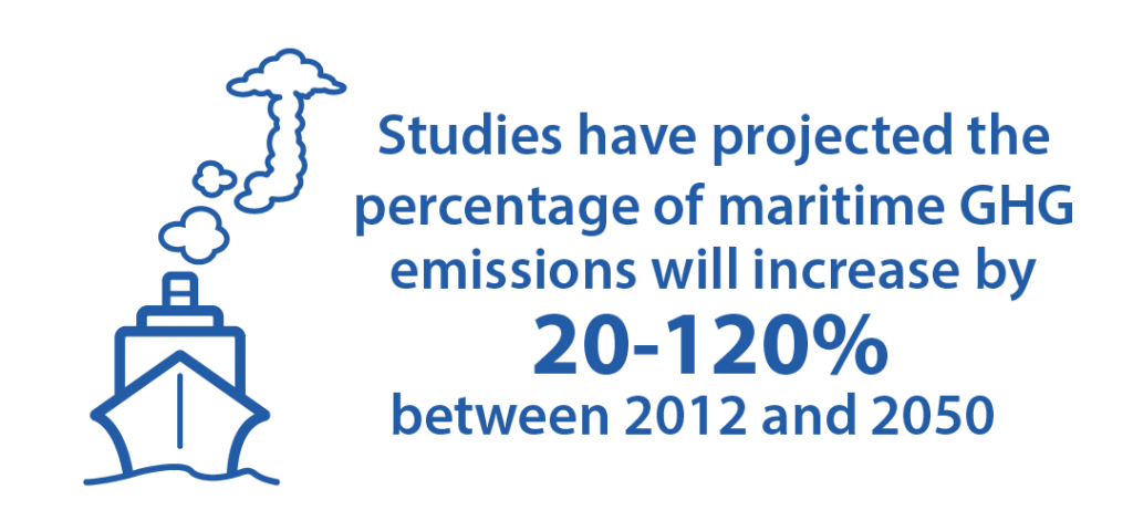 The maritime industry currently accounts for a small percentage of greenhouse gas (GHG) emissions — approximately 3.1% of annual global CO2 emissions according to the Third IMO GHG Study conducted in 2014. However, studies have projected that percentage will increase by 20-120% between 2012 and 2050 if the world continues to move away from using fossil fuels.