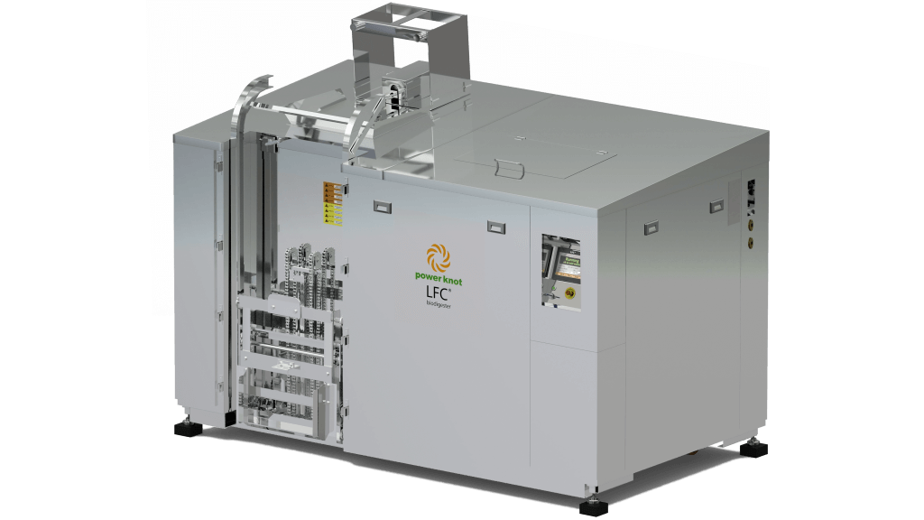 Featured: the LFC-1000 biodigester with a built-in bin tipper to maximize utilization of space and size