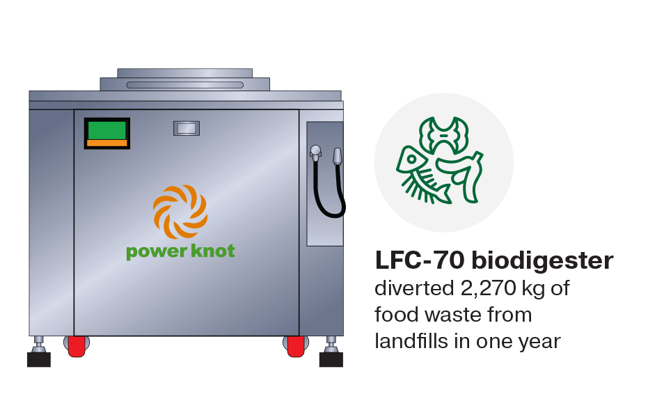 “The hospitality industry is credited for its large carbon footprint due to its massive food operations and the resulting challenge of food waste,” commented Sophie Blondel, General Manager at The H Dubai, in a Trade Arabia article announcing the hotel’s latest Green Key Certification by the Emirates Green Building Council. “To tackle the issue, The H Dubai Hotel has installed the Power Knot LFC-100 biodigester to address the challenge of food waste. It improves in-house food management and disposes organic waste quickly and safely while massively reducing the property’s carbon footprint.”