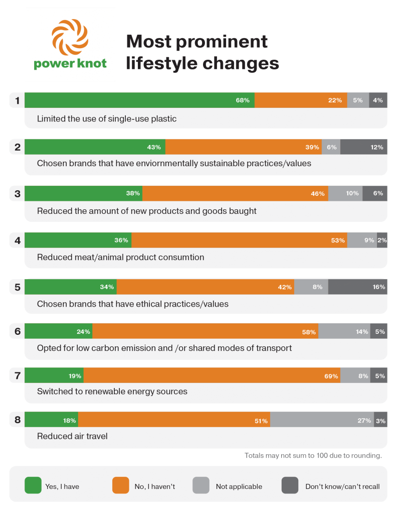 1 in 5 consumers are opting for low-carbon transport, switching to renewable energy, or cutting back on the number of flights they take.
