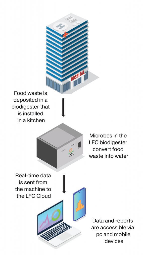 As hospitals expand their work to reduce their environmental impact, food waste must be part of the conversation. Fortunately, solutions like the LFC biodigester make it easier to make food waste mitigation work part of bigger sustainability initiatives. For example, biodigesters emit gray water as a byproduct. While this water can be disposed of down the drain, it can also be used to sustain the green roofs and landscaping being incorporated in more healthcare facilities.