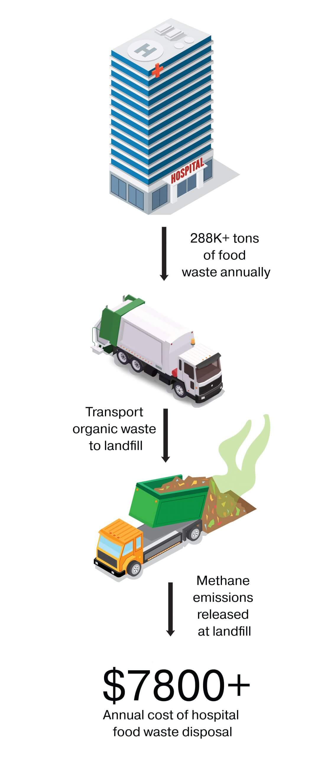 Now, as more hospitals are taking a closer look at how their food offerings and disposal methods impact their patients, they are finding alternative disposal methods that can help them reduce their overall GHG emissions, their spending, and their impact on population health.