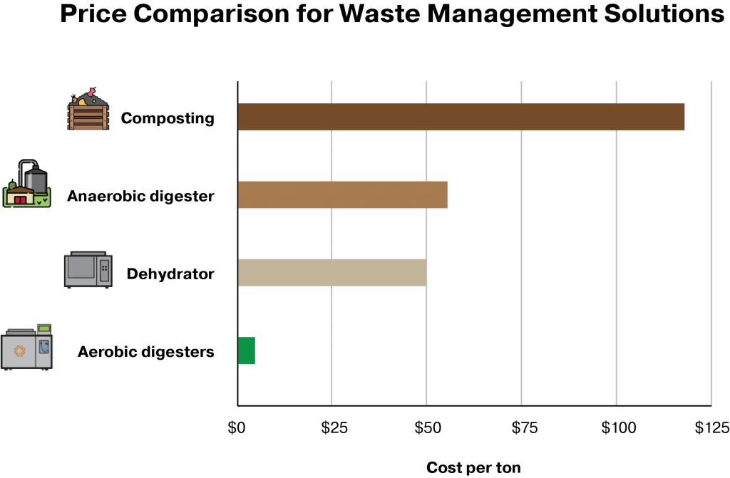 Composting is well-suited for businesses with a high volume of organic waste, particularly those located near processing facilities. While composting facilities can handle over 2000 tons of organic waste annually, the process requires labor-intensive efforts and transportation for waste hauling and composting. On average, the cost to transport and compost 1 ton of food waste is approximately $120.