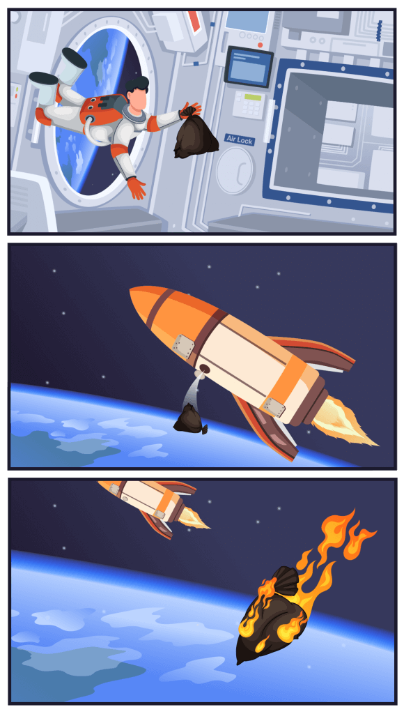 The confined quarters of spacecraft like the ISS present another challenge: limited space for waste storage. Unlike on Earth, where waste can be taken away regularly, space missions do not have the luxury of frequent disposal. Every bit of waste generated must be stored until it can be disposed of safely, often upon re-entry into Earth’s atmosphere, where it burns up. This constraint requires highly efficient storage solutions that minimize space while maximizing safety and hygiene.