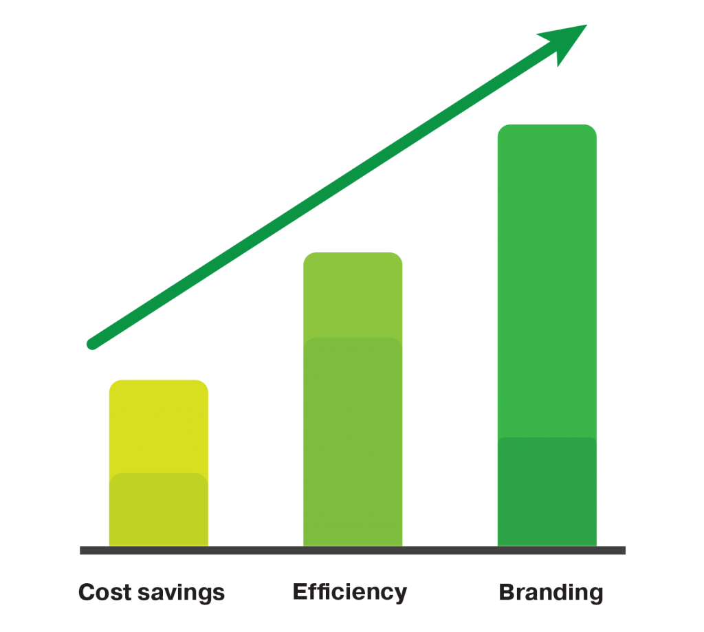 Highlight Business Benefits: Present the diverse benefits of sustainability initiatives, including cost savings, increased efficiency, improved brand image, and access to new markets. Use research and case studies to show the positive impact on peer companies.