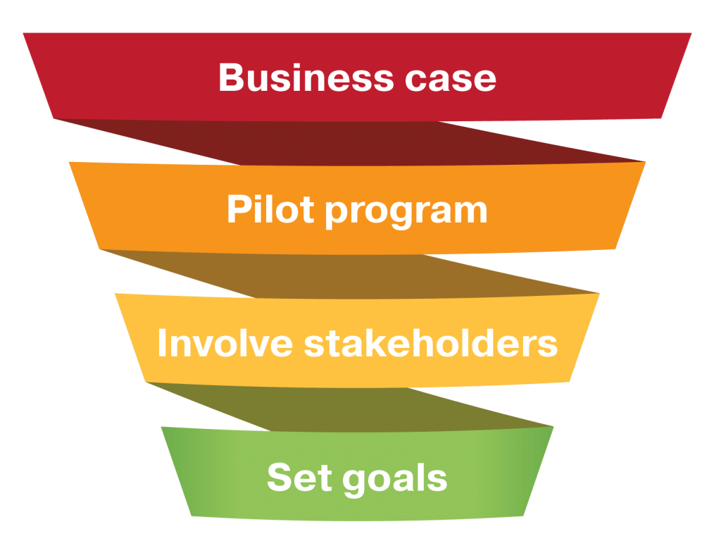 Cross-Functional Involvement: Involve stakeholders from finance, marketing, and operations to gain acceptance and support. A cross-functional team ensures the sustainability program aligns with strategic goals and objectives.
