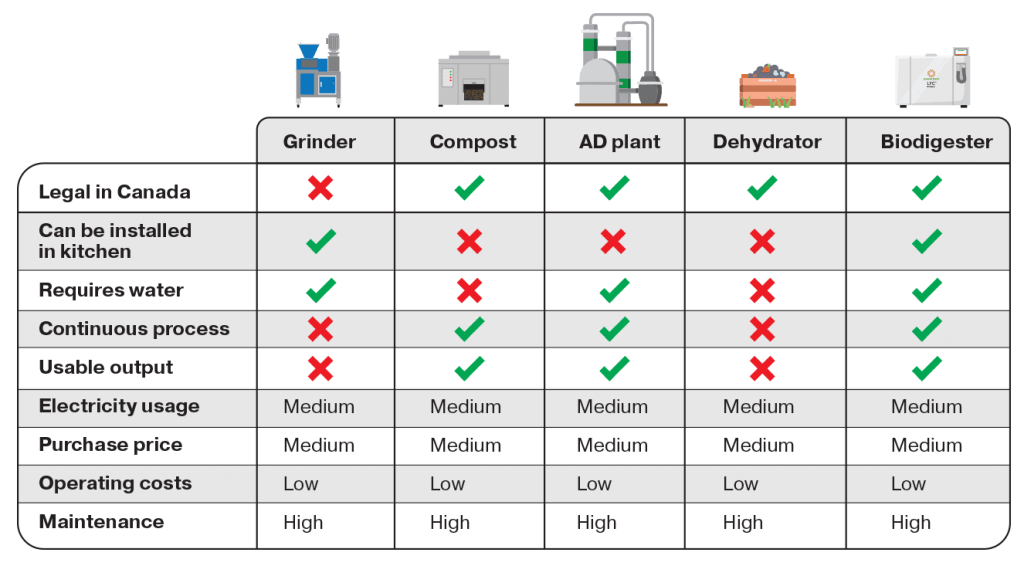 To meet the new requirements, businesses must adopt innovative solutions to handle organic waste effectively. The choice of technology will depend on the scale of operations, budget, and local regulations. Below are the primary options available for businesses seeking to reduce food waste: