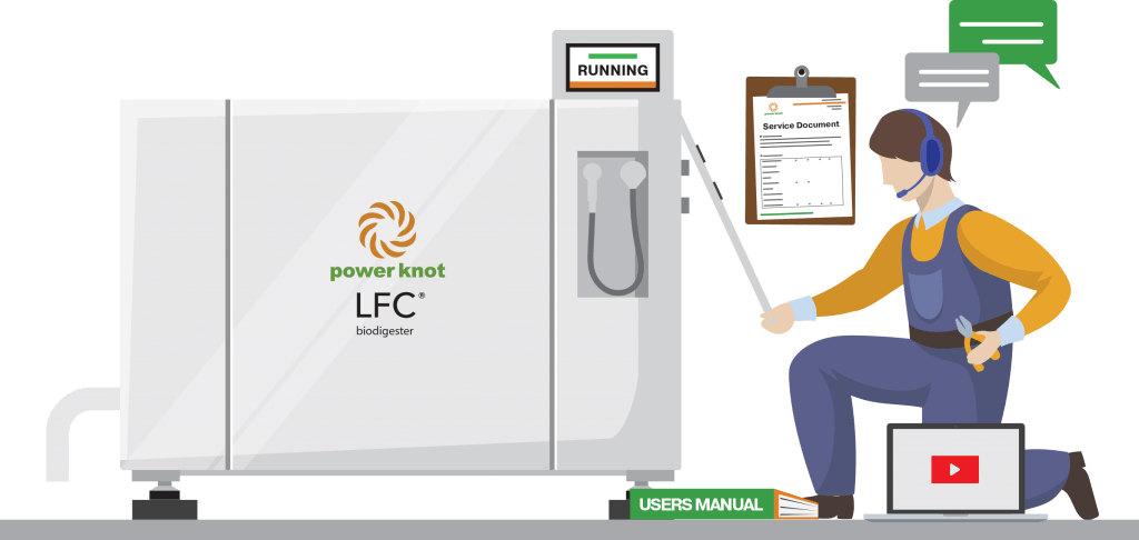 When an LFC® biodigester is out of warranty, customers have the full right to repair their machines. Unlike many companies that restrict access to service documentation, Power Knot provides complete transparency: