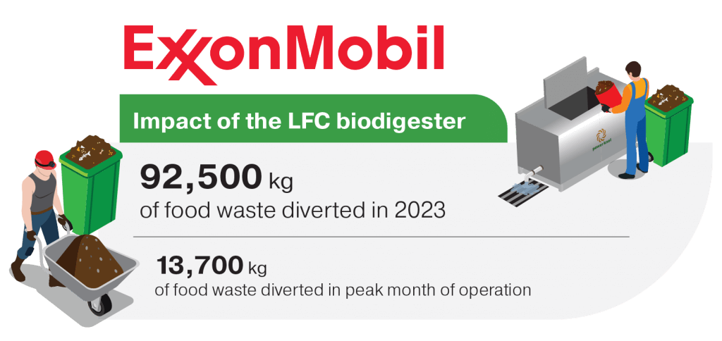 This search led ExxonMobil PNG to the LFC-300 biodigesters. They purchased and installed four of the machines at the site. Over the course of nine years of continuous operation, the company realized significant cost savings and labor efficiencies. In 2023 alone, the camps diverted 92,500 kg of waste from the landfill – including 13,700 kg of waste in a single month.