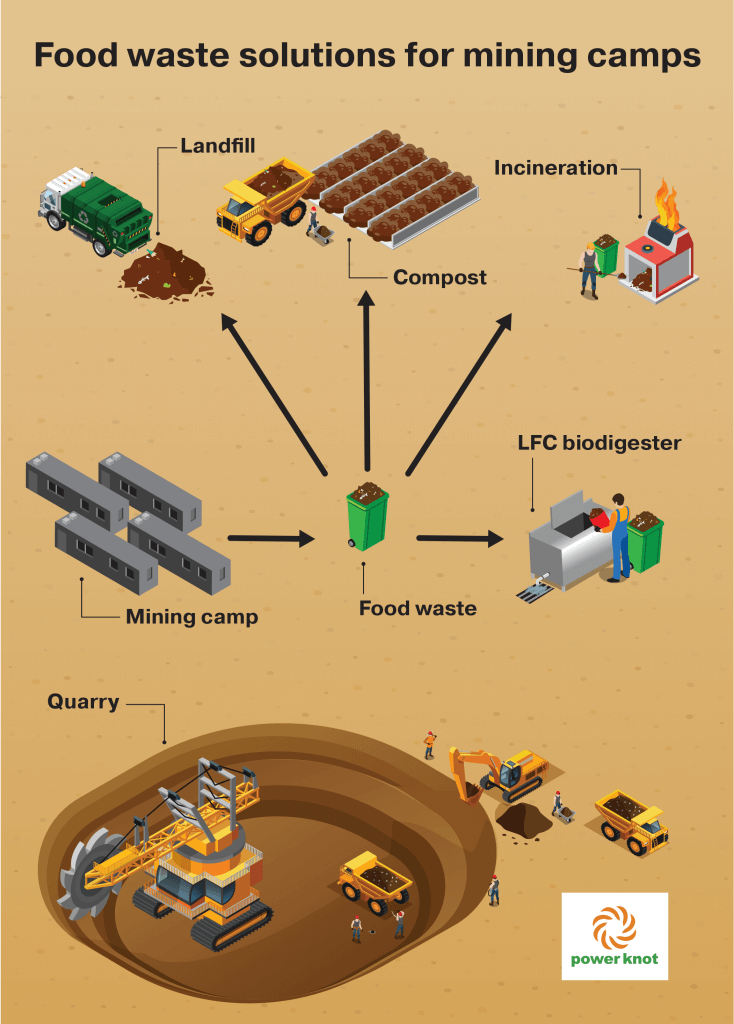 Mining operations often choose the LFC-1000 biodigester, which is equipped with a bin tipper that helps to manage the high volume of waste generated by these sites. To learn more about the options available to simplify waste management, visit our Mining Operations Resource page or reach out to a Power Knot distributor today.